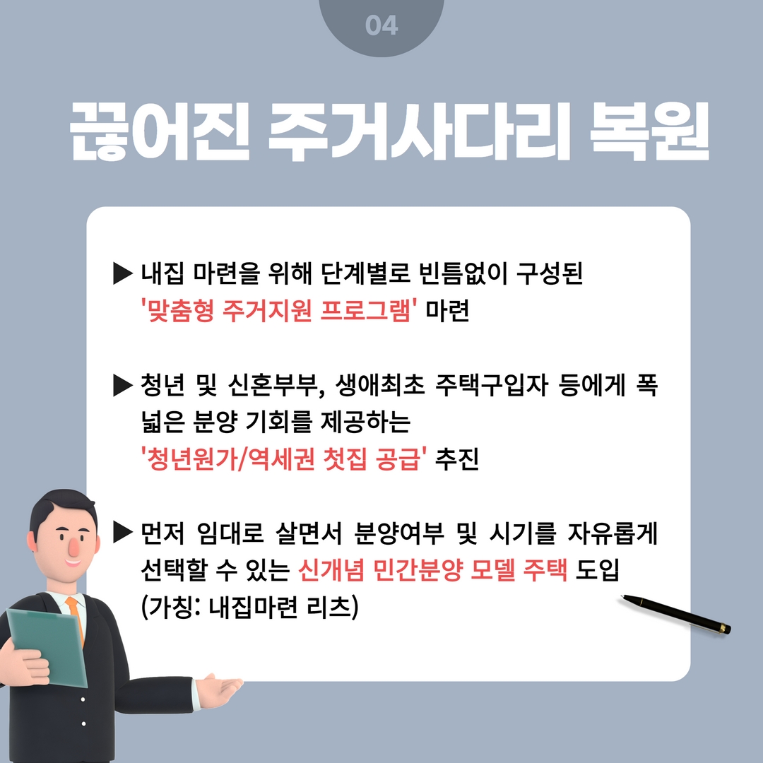 이상 국민 주거안정 실현을 위한 5대 전략에 대해 간단하게 알아보았는데요. 이뿐만 아니라 위 내용에 해당되는 정책들이 차질 없이 추진될 수 있도록 향후 5년간의 공급 계획을 꼼꼼하게 세워두었다고 합니다.